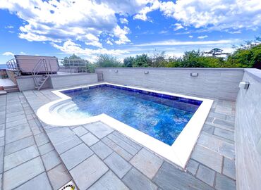 3 Bäder: Bad/WC, Dusche/WC, Bad/Dusche/WC. Balkon 10 m², Terrasse 30 m². Waschmaschine, Sprudelbad.