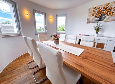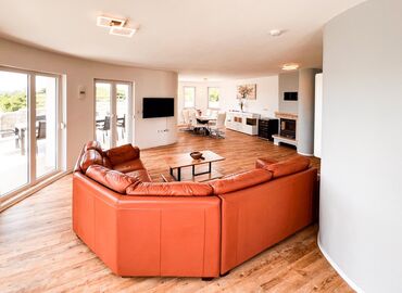 4-Zimmer-Haus für 8 Personen, 194 m² auf 2 Stockwerken. Wohn-/Esszimmer mit Sat‑TV, WLAN. 5 Schlafzimmer mit Doppelbett. Küche mit Herd, Mikrowelle, Backofen, Geschirrspüler, Kühl-/Gefrierschrank.